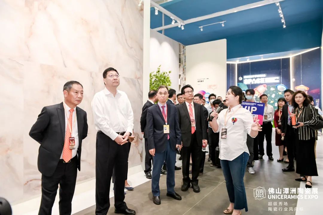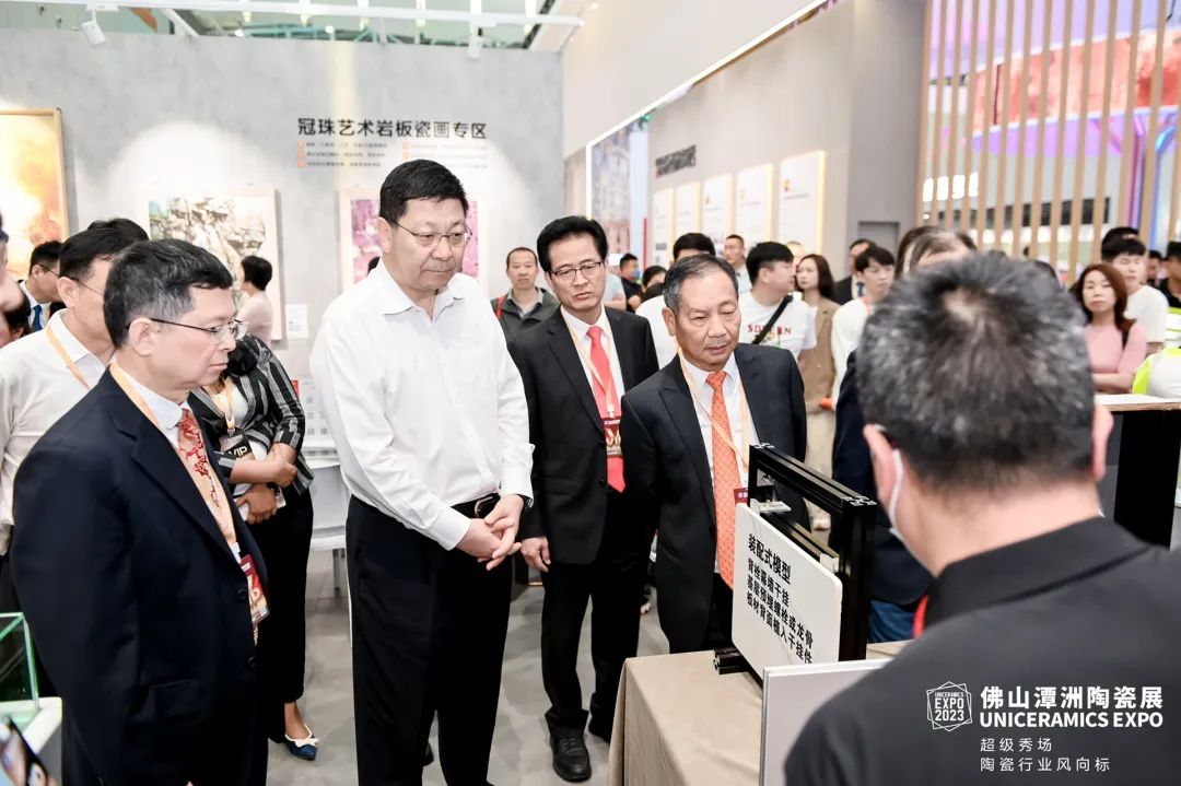 上午9時,2023佛山潭洲陶瓷展在潭洲國際會展中心1號館舉行了開幕式。佛山市長白濤親臨展會現(xiàn)場,參觀了冠珠、宏宇、薩米特、馬可波羅、蒙娜麗莎、諾貝爾、順輝、大將軍、鷹牌生活、越南VCG等展館,對參展企業(yè)產(chǎn)品、設計及空間應用展示做出了高度評價。